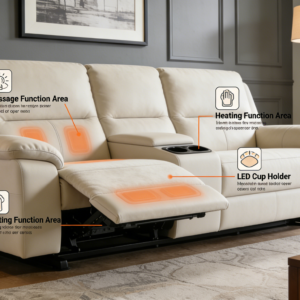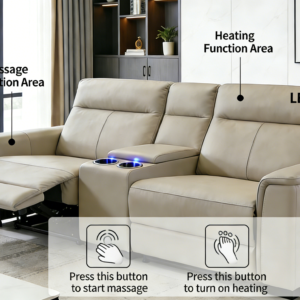 Premium Motorized Sectional Sofa – 68″ 3-Seat, Massage & Heat Functions, LED Cupholders – Home Cinema Set